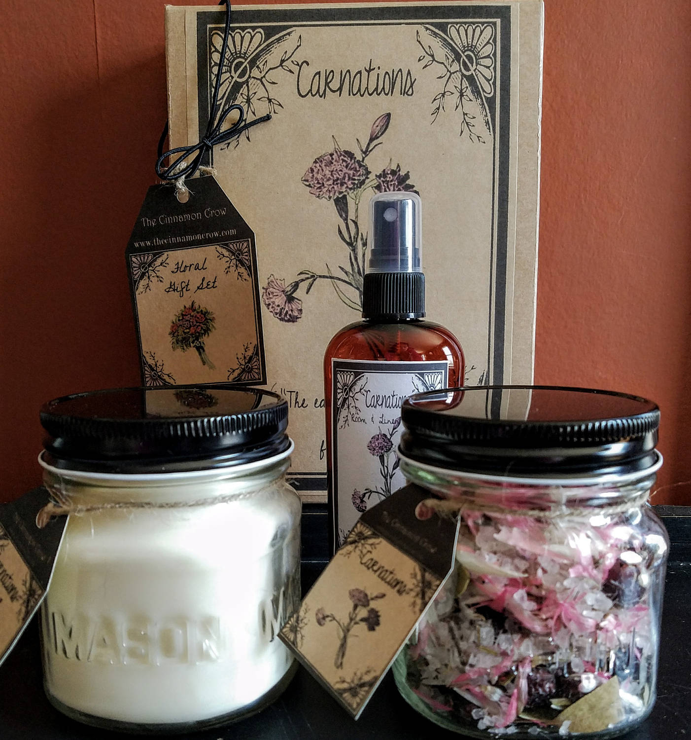 Beautiful carnation scented gifts in a pretty gift box set all ready for the giving.