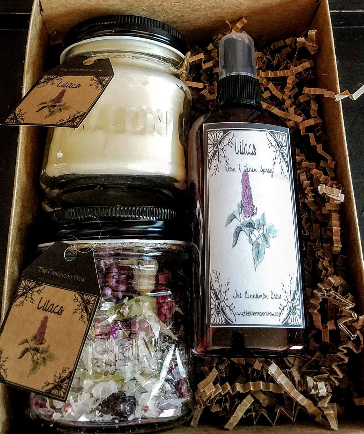 Beautiful lilac scented gifts in a pretty gift box set all ready for the giving.